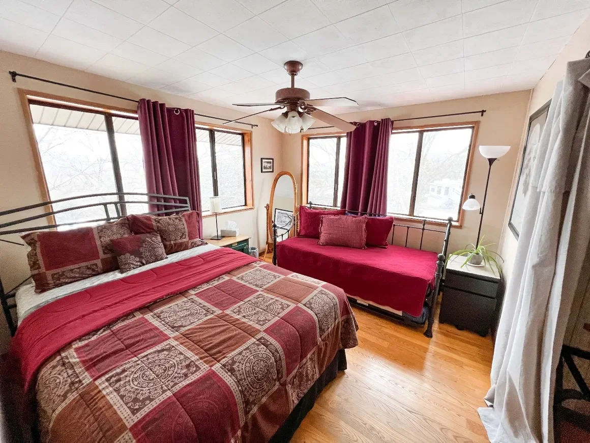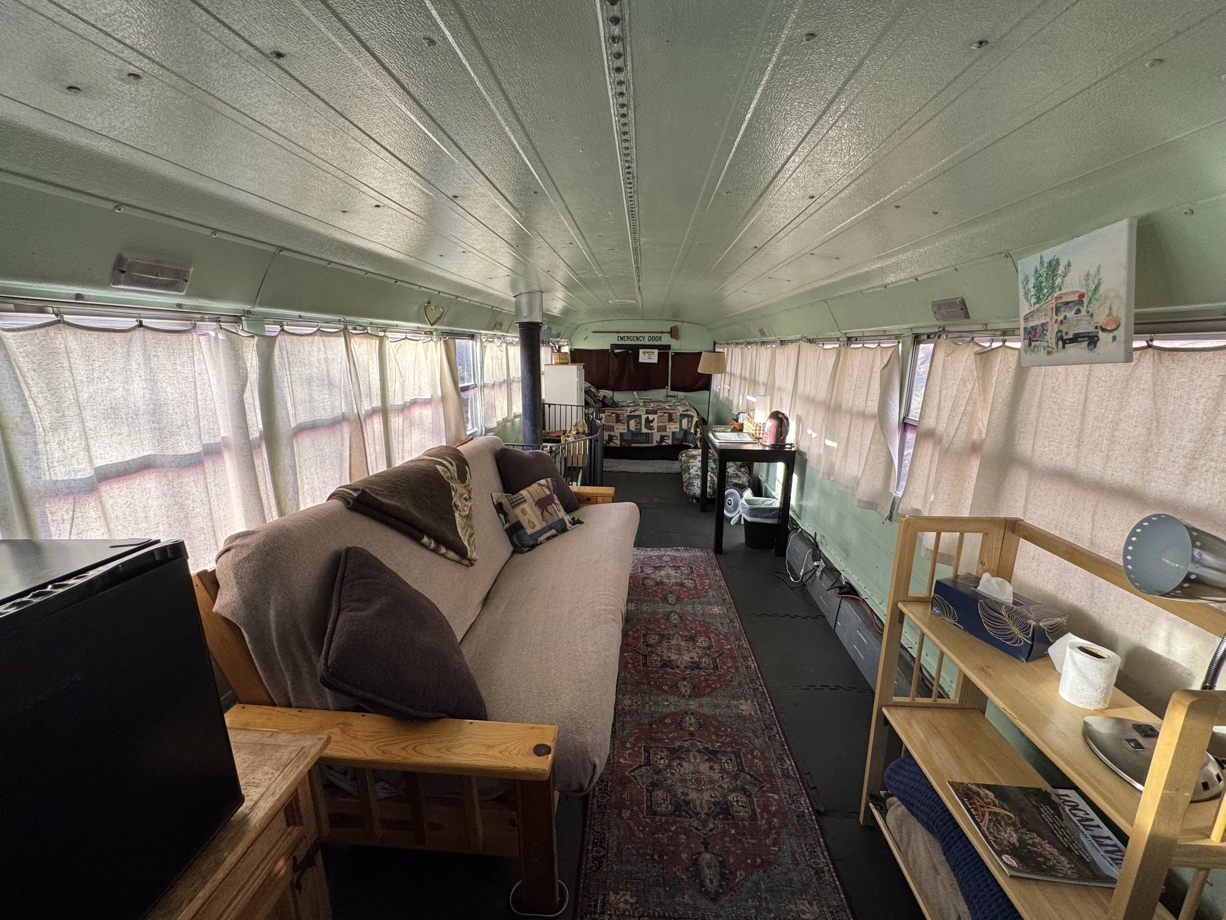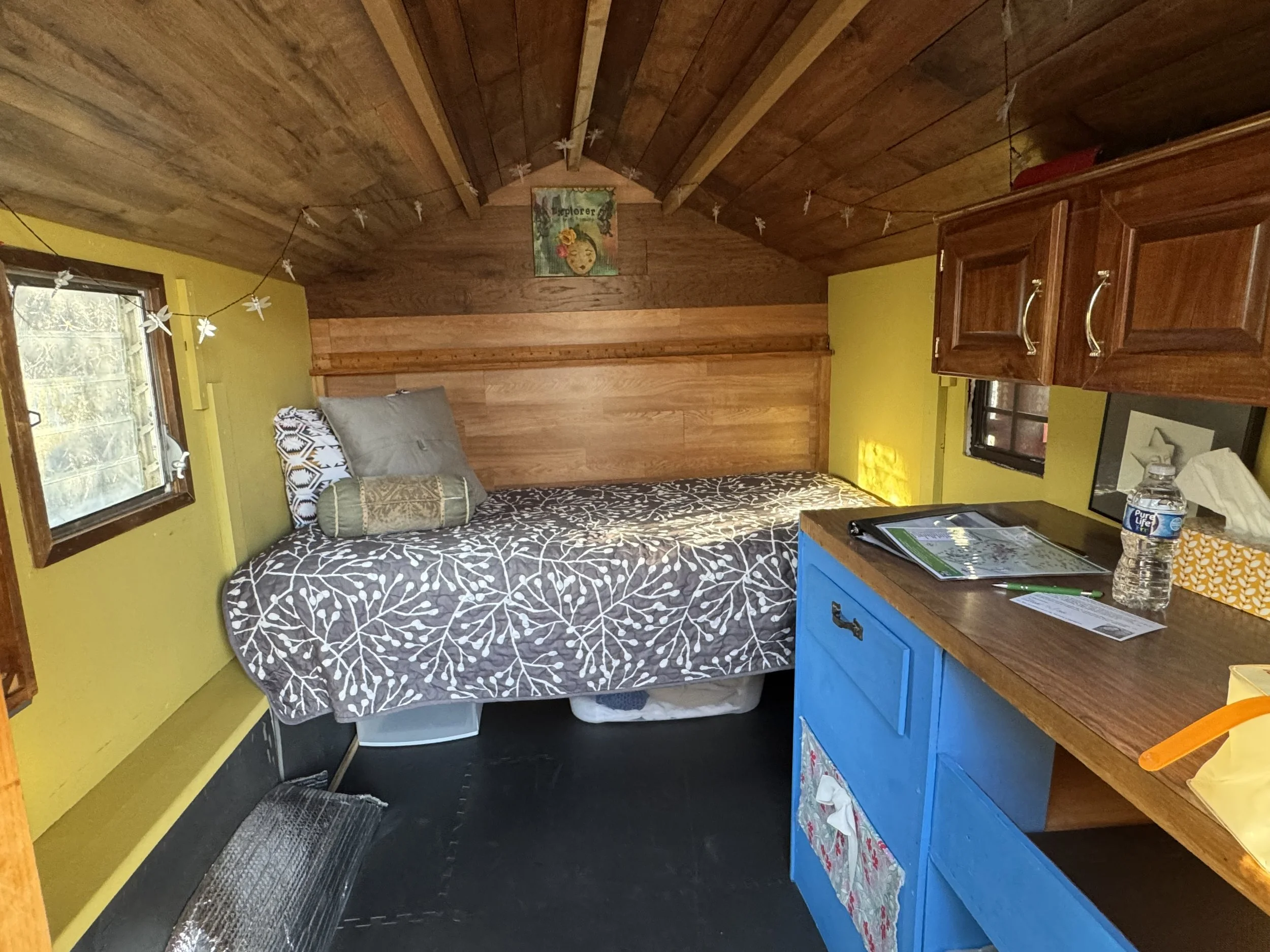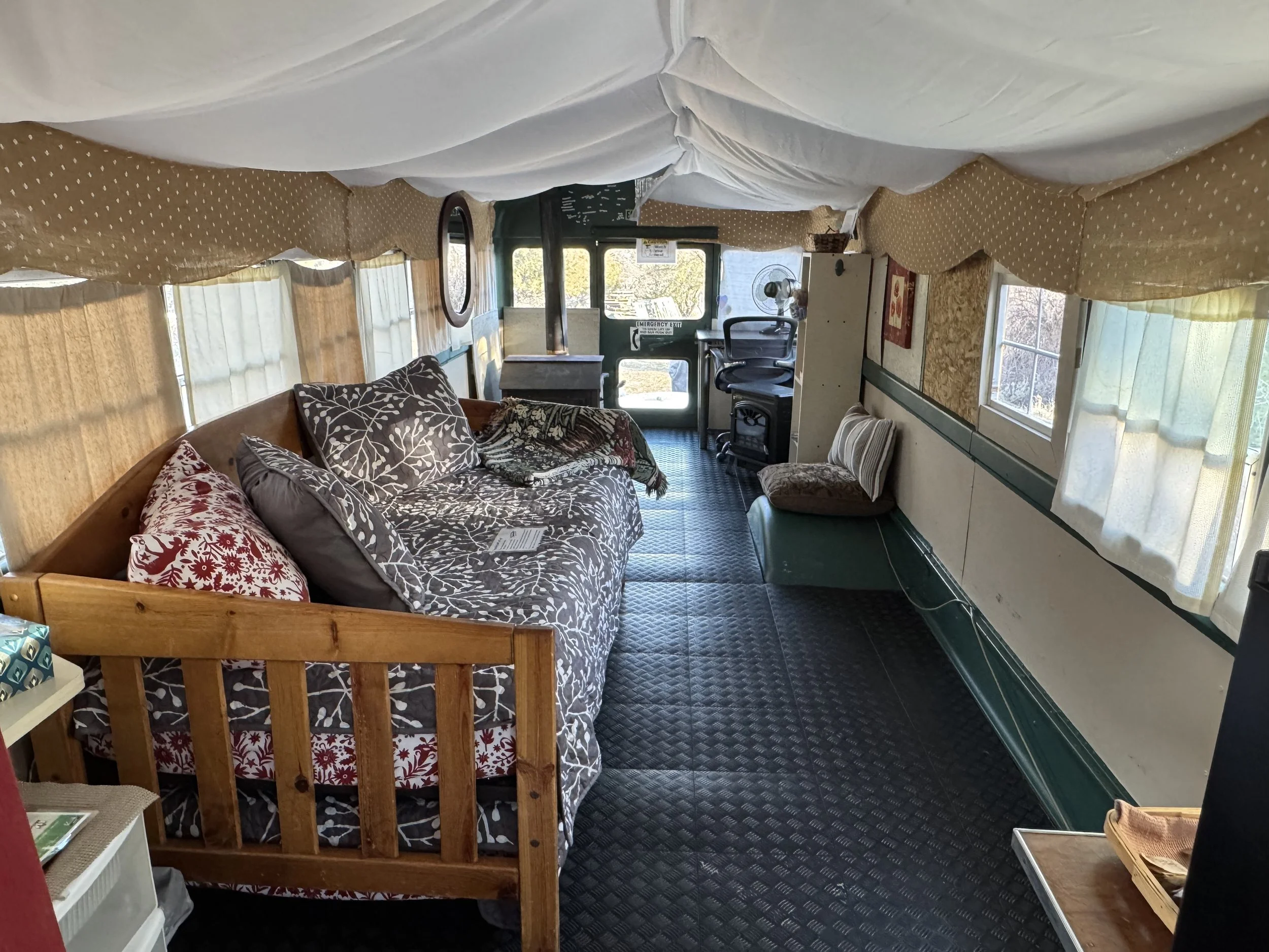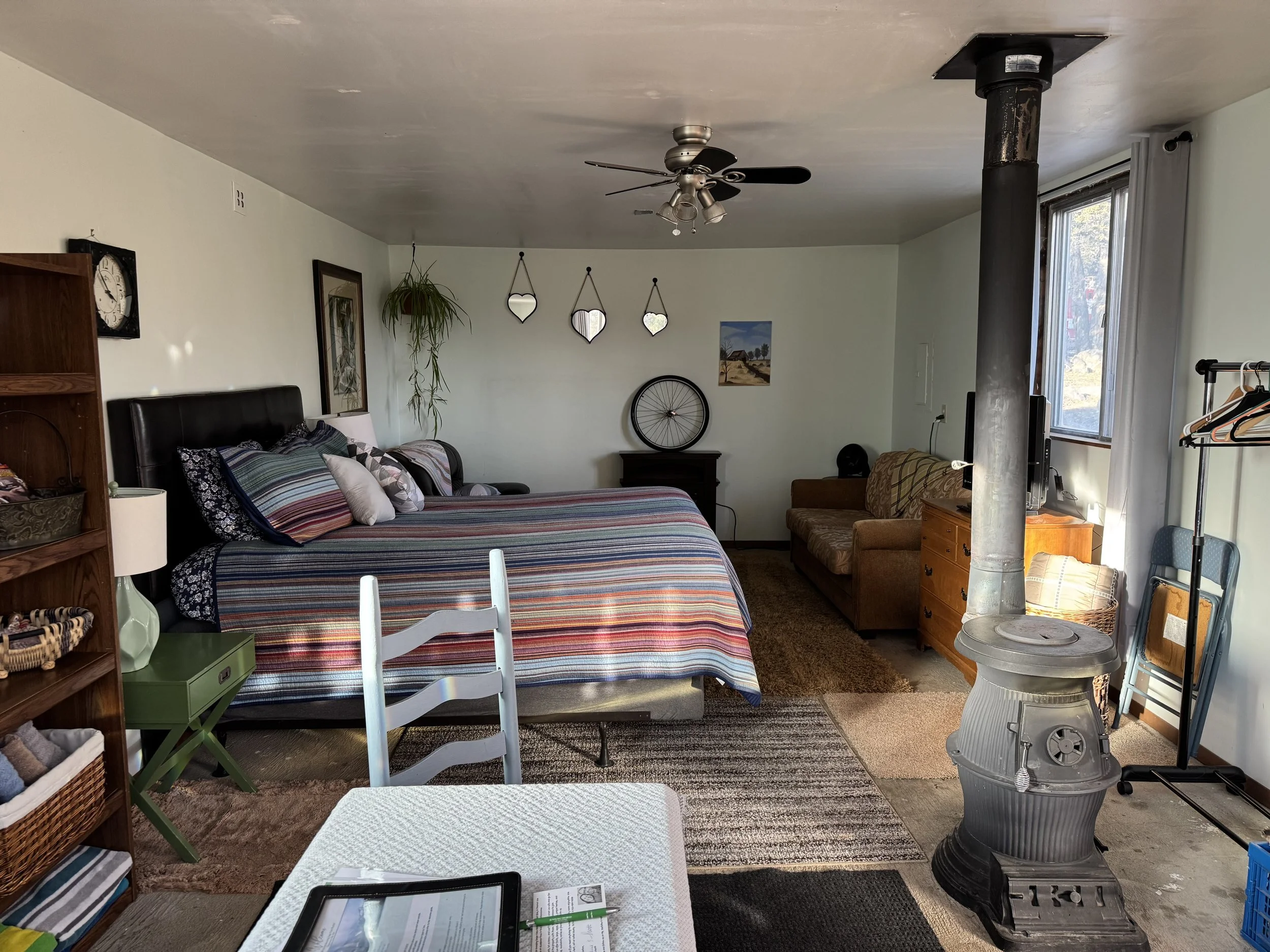• Stay comfy year-round with a wood stove, electric heater, and AC.
