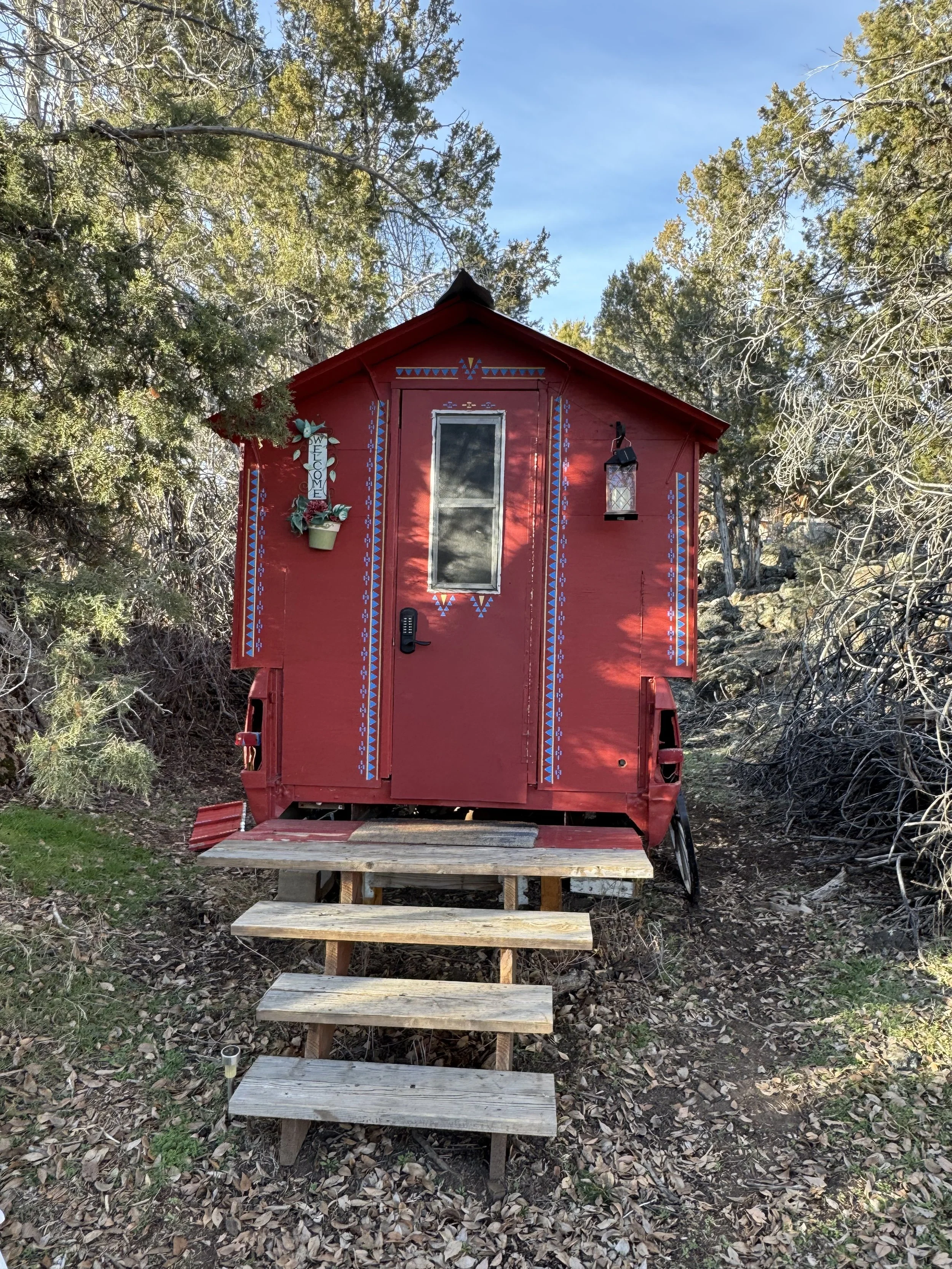 Enjoy gleaming in one of these wagons. If you are taller than 6ft. you can only stand tall in the center. This cozy retreat does not have electricity but features: